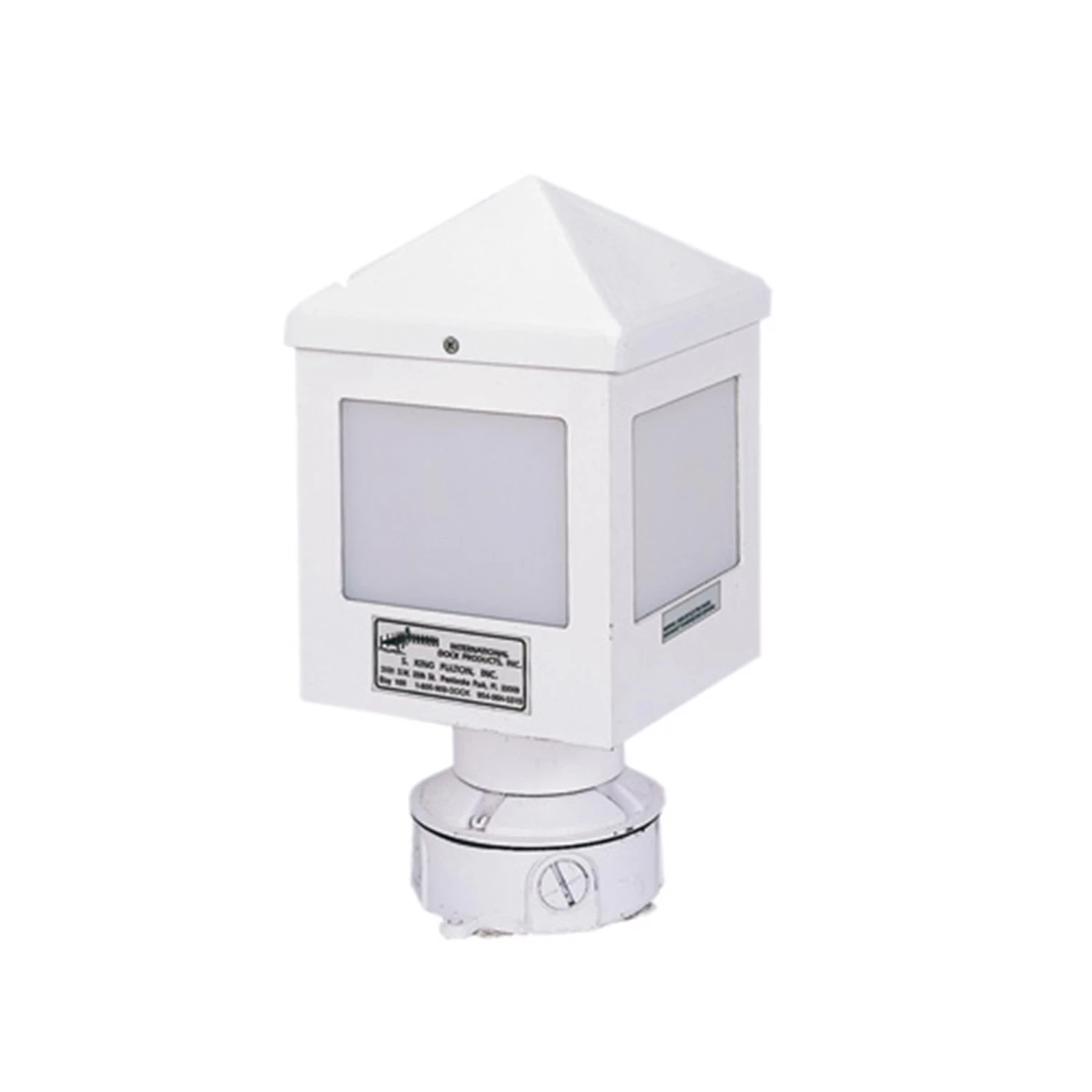 Free-standing or post-mounted fluorescent lights are designed for the corrosive saltwater marine environment. Constructed of aluminum, with white powder-coated finish and economical low-wattage bulbs, it provides 360° illumination through their small plastic windows. Heavy-gauge aluminum cases stand up to dock carts and marina other hazards.