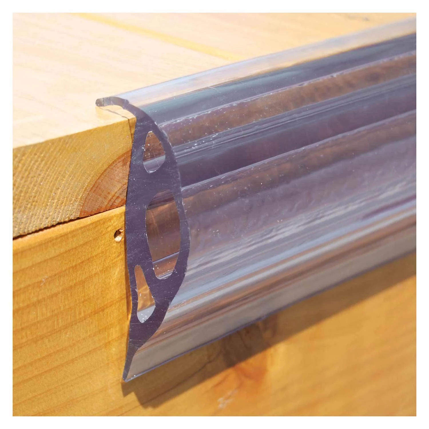 Patent Pending ClearVue™ Vinyl Dock Edging is made entirely of clear PVC, allowing the natural beauty of a wooden dock to stand out. ClearVue™ edging is a 100% translucent, optically clear, non-yellowing marine grade vinyl. It is also specially formulated to be non-marring, UV and mildew resistant. Small Commercial “P” Shape is a heavy duty commercial grade profile with heavier wall sections and reinforcing ribs — providing extra protection. Measures 3.125″ tall x 2.00″ wide. 10′ Length — ships coiled.