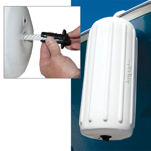 - Unique design holds 3/8″ line to hang center tube fenders without tying a knot in the end